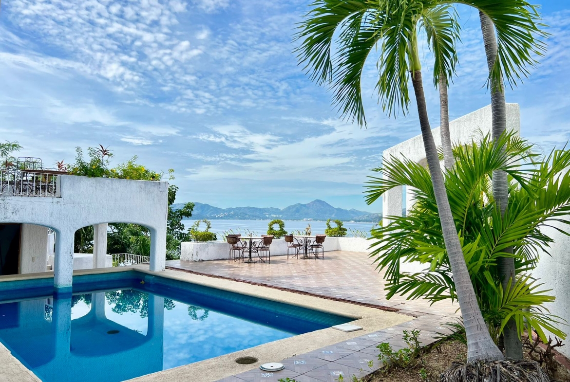 Ubicada en la zona turistica de manzanillo a tan solo unos pasos del Hotel las Hadas, esta propiedad con vista excepcional a la Audiencia y a la Bahía de Manzanillo ofrece amplios espacios estrategicamente ubicados entre areas abiertas y cerradas para disfrutar de la magnifica vista desde donde mas te agrade.