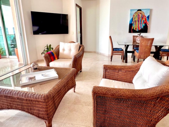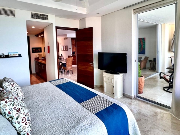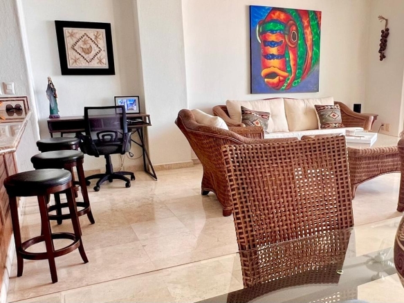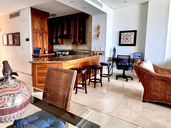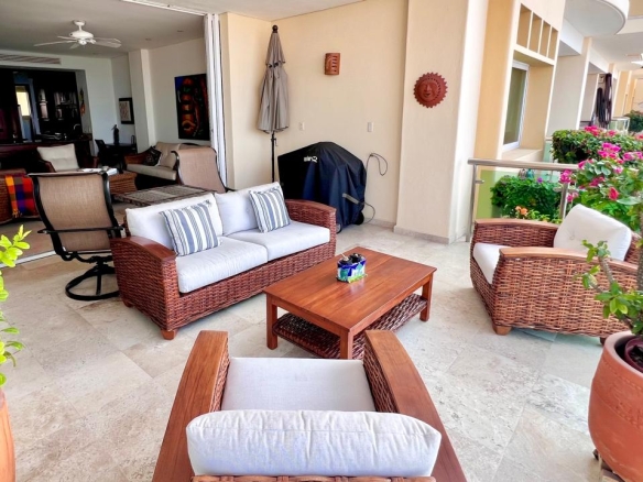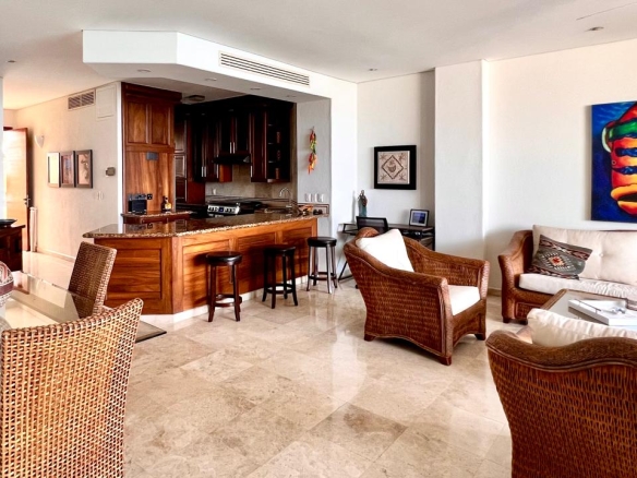Sal al amplio balcón privado, perfecto para el café de la mañana, cócteles al atardecer o para recibir amigos con el mar de fondo. En el interior, el condominio presenta acabados actualizados en todo, fusionando sofisticación moderna con calidez y comodidad habitable.