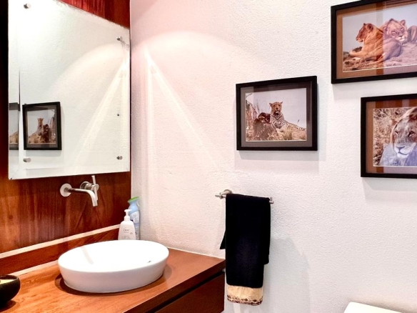 Esta hermosa casa cuenta con dos amplias habitaciones, cada una con su propio baño privado, además de un medio baño adicional para los invitados, un diseño ideal para la comodidad y el entretenimiento.